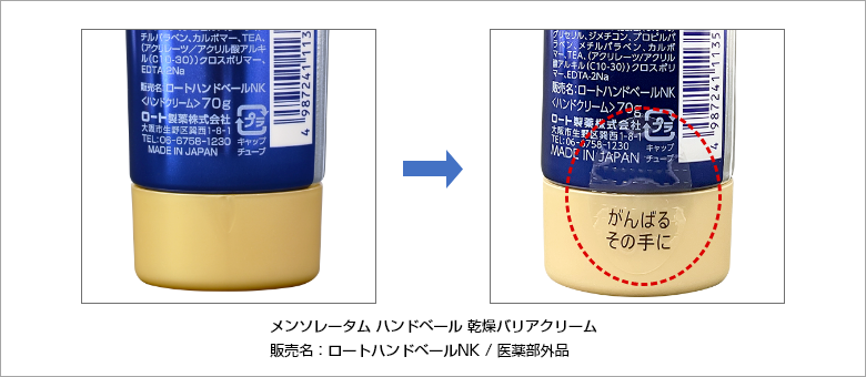 商品名:メンソレータム ハンドベールシリーズ“未開封”と分かるように変えました お寄せいただいたご意見 このハンドクリームは、ビニールで巻いたり、キャップを外すところにシールが貼ってあったりしないのでしょうか? 60代女性 製品自体にシュリンクやキャップにシールなどは付いていますか?テスターとして使われていても分からないですよね。 50代女性 以前のハンドベールシリーズ(4製品)は封緘シールやシュリンクがされていなかったため、誰でも簡単にキャップを開けられる状態で店頭に並んでいることに心配の声が寄せられました。 そんなお客様の不安な気持ちに寄り添い、安心してご使用いただくために、開封していないことが分かるようシールを貼りました。 ※2023年時点の活用事例です。リニューアル等によりデザインや表記が変更になることがあります。 一覧へ 前のページへ 次のページへ