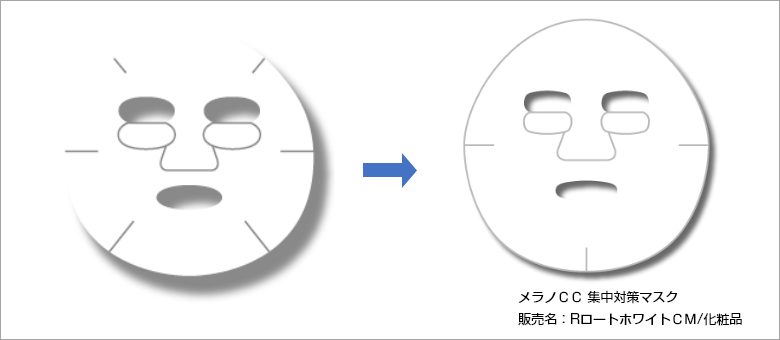 商品名:メラノCC 集中対策マスク顔へのフィット感をアップさせました お寄せいただいたご意見 メラノCC集中対策マスクは切れ目が多くて広げづらく、鼻と口の間の部分が細くて顔にフィットしないです。 40代 女性 男性用ではないと分かっていますが、顔とサイズが合いません。 目の部分が大きく開いていて、顔に貼り付けると鼻の部分が足りません。 30代 男性 以前のマスク形状は、フェイスラインに合計6本の切り込みを入れていました。 そこで、切り込みを3本に減らすのと同時に、目や口の穴を若干小さくしてフィット感をアップさせました。 美容液だけでなく使い勝手も良いと感じていただけるよう、今後もお客様の声を活かしていきます。 ※2023年時点の活用事例です。リニューアル等によりデザインや表記が変更になることがあります。 一覧へ 前のページへ 次のページへ